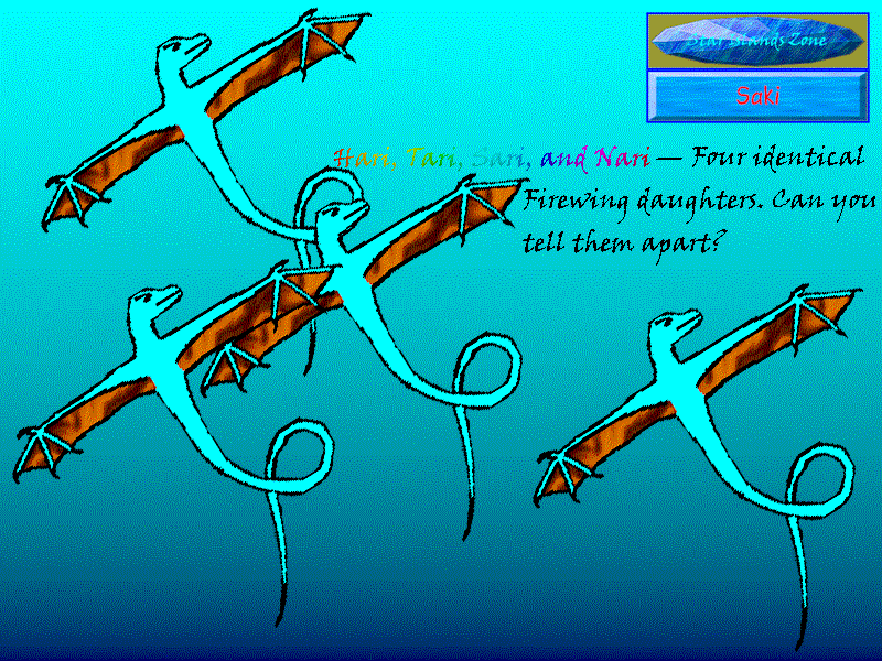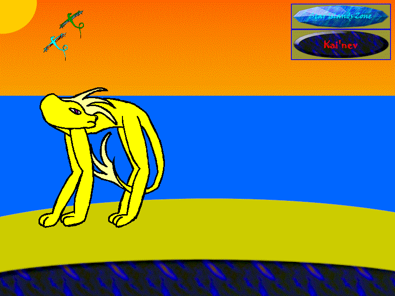 "Where is everything?!" You scream as you close in. "No animals, no trees, no little beach critters, absolutely-" "SHUT UP AND LEAN TO THE RIGHT!" Jekkal screams at you. You duck down just in time to avoid a lava bubble. "Listen. Bekonoret is an extremely active island. In fact, we just had the worst of luck to come during an eruption. You wanted to come here, and I figured it would be okay. So quit being such a smart aleck critic about this place and help me out here, alright?" "Hokay." You whimper. "Good. Now, as you saw coming in, nothing lives on Bekonoret. Not for very long, anyway. But the adoption centers do send over wallpapers deisnged for 800 by 600 resolution that you can use if you don't own a website or want to waste the precious webspace you have. I know some places like Geocities and Xoom usually offer about 11MB of space, but some places only offer 2MB. So," Jekkal says, slapping her taloned hands together,"Which one would you like to download?" To adopt here.... To download an image at it's full size, click on the text link. Then right click on the Image after it's done downloading, and go to 'Save As Wallpaper'. These are designed for 800 by 600 resolution, so make sure that's what your computer is set at. |