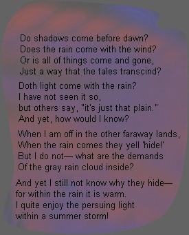 "Not the rain itself.... I enjoy the Summer Storm."