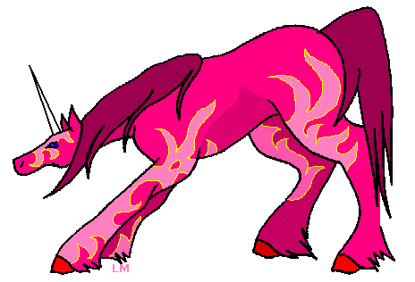 "Bladewing has quite a point there." Surprize Flame snickers. "Man, If I had been around when the flame Unicorns had hunters to worry about, I'd last forever! Nobody can get the drop on me when they can't see me? See?" And with that, he vanishes again. Jekkal looks around, gets confused, and waddles forward, going in for slam but hits sand. You take a few steps right and run right into him. "Stay back a little!" he says. "I don't like being touched by humans." He walks over to a secold flame, not hidden, but well-disguised against the black sand. She speaks softly, causing pictures to form in your mind. "I am Fantasy Flame, Flame of the Storybook Legends. I hope you enjoy your journey." She grins, and then walks out of your line of sight to a new red flame unicorn. "He is Nature Flame, Flame of Nature.