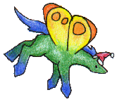 You also notice a split Chrysalis. Jekkal leans over to your ear. "That is the old chrysalis of our Chrysalis Horse, Kertoli. She's a beaut." You look behind your shoulder to see the Chrysalis Horse flying... with DRAGON WINGS?!??!! "I know, most Chrysalis horses have fairy-like wings." Jekkal tells you. "But I think it's a mutation, and all the same, Kertoli is a racer by nature." She then directs your attention to a green/blue stallion with butterfly wings and a tiny Santa hat. "And this is Seres, my Shaenel." |