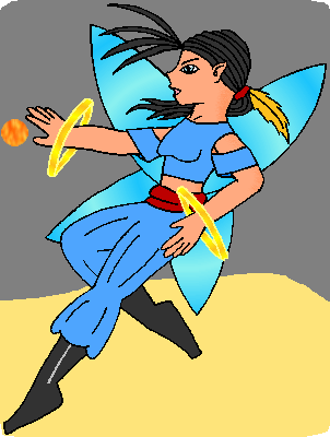 "There she is!" Spyro Prime pointed out a blue-clad figure on the field. "Not to sure what those rings she has are for, but she's giving those monks a run for their money!"